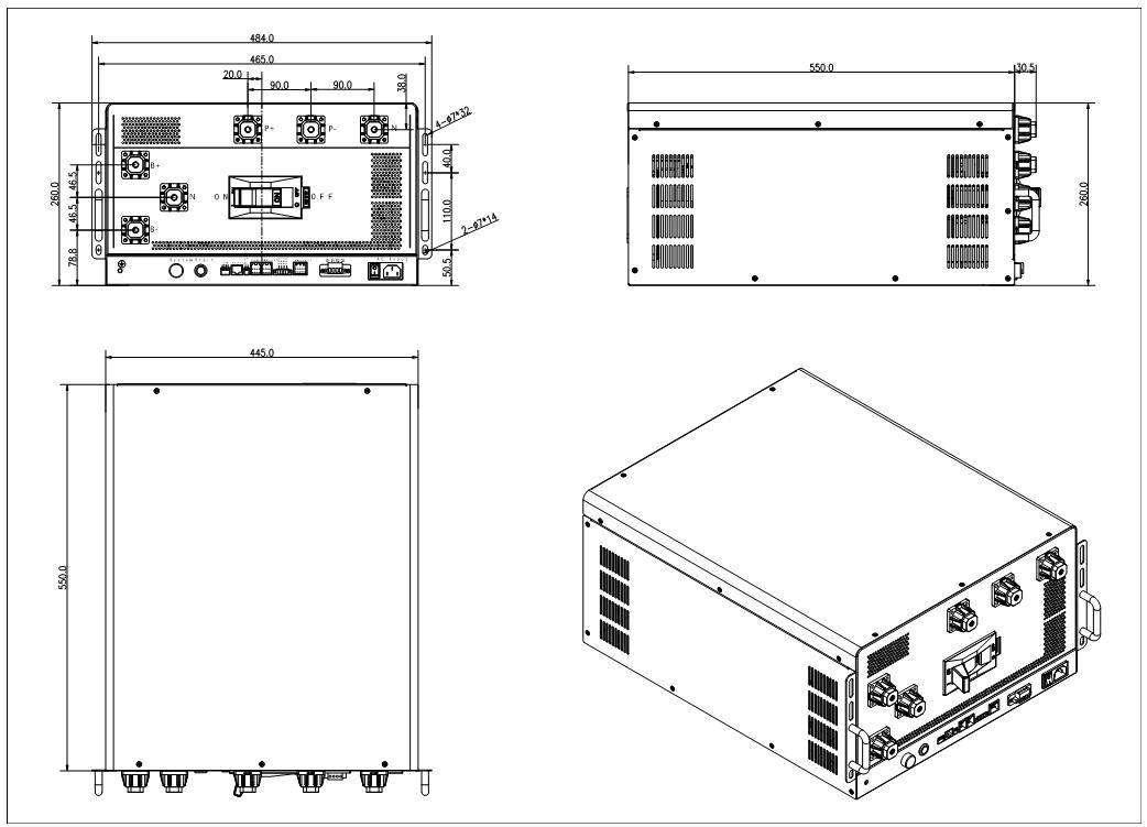 2 | P+ P- N | Power port for connection to charging equipment (UPS) or DC bus | Recommended connecting bolt M10*16, torque 12-20N m |